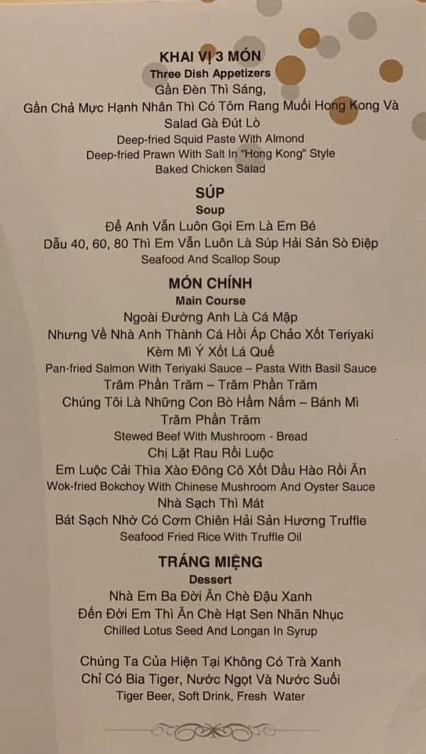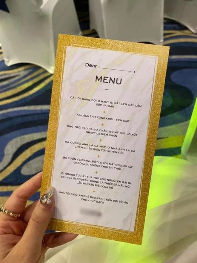 Sau đây là một vài chiếc menu tiệc cướɨ cực sáng tạo, bắt đủ thứ trend trên trời đã viral gần đây:
