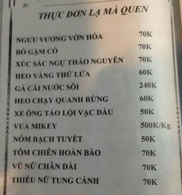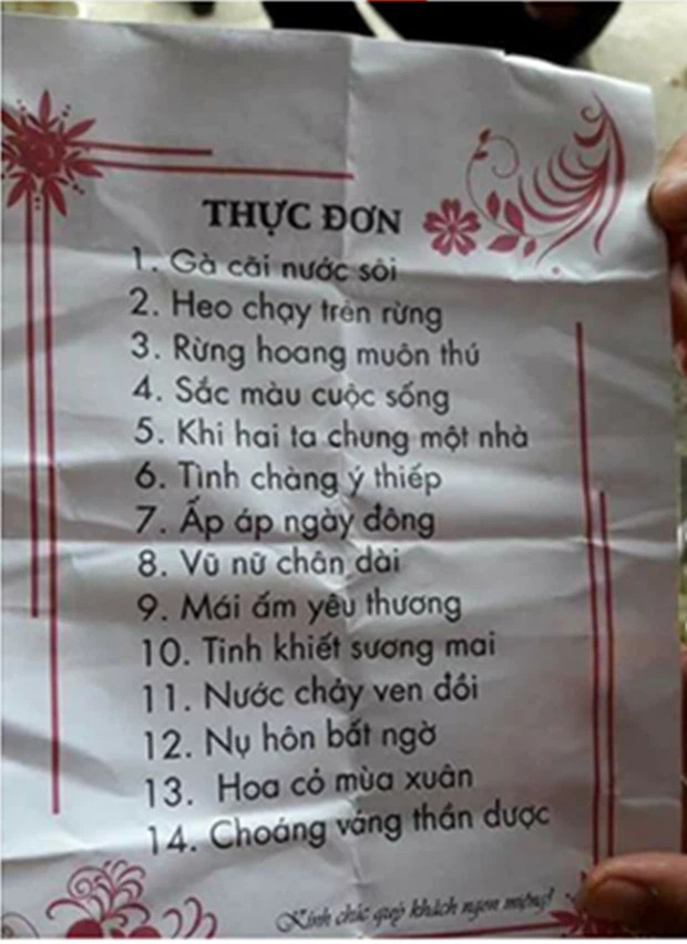 Một chiếc menu đổi tên món ăn khác để “đánh đố” khách, phải tư duy kỹ lắm mới đoán ra được đủ các món đó nha!