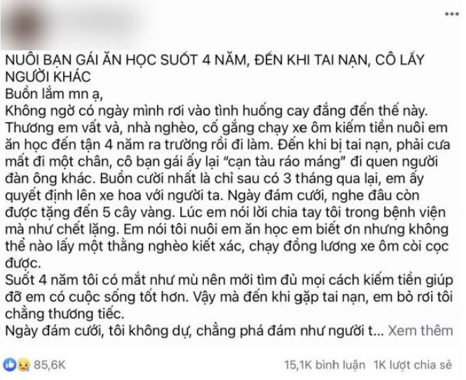 “Con gái bây giờ sao mà thực dụng quá vậy. Nuôi ăn học những 4 năm và nhận cái kết mặn chát”