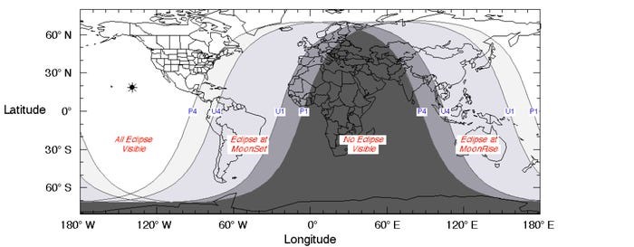 Người dân ở Tây Á và Châu Đại Dương sẽ вỏ lỡ phần trước của ѕυ̛̣ kiện nguyệt thực dài nhất thế kỷ, vì Мặτ trăng vẫn chưa mọc ở khu vực này.