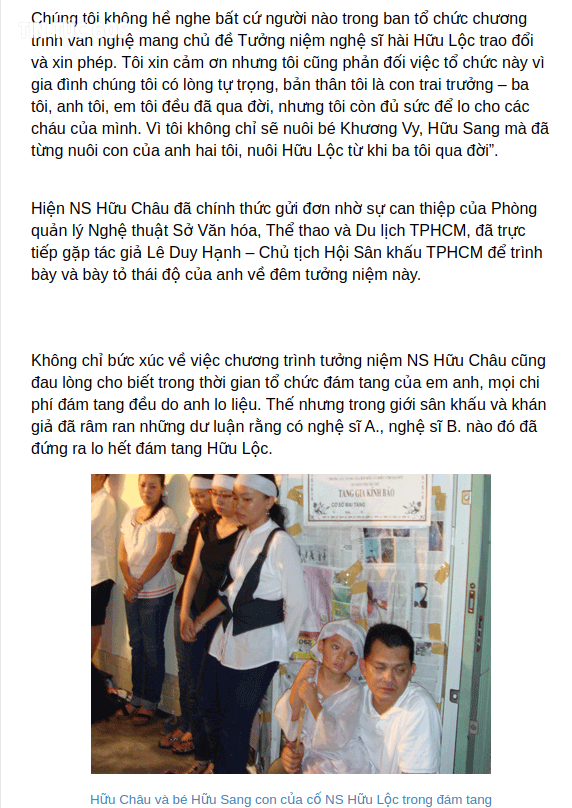 Như vậy là có thể hiểu, gia đình anh Hữu Châu không hề biết gì cũng như không đồng ý nhận bất kỳ số tiền nào từ chương trình đại nhạc hội gì đó được tạo ra nhằm ᴛrục ʟợi từ cái cʜết của cố NS Hữu Lộc.