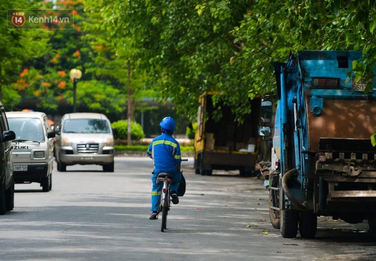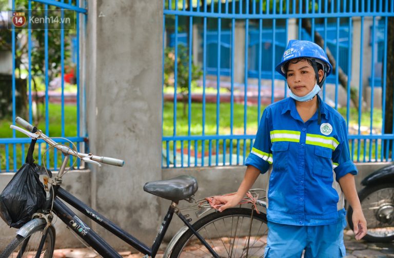 Công việc của chị Uyên là thu gom rác ở chung cư rồi đưa về khu tập kết ở Cung điền kinh Hà Nội