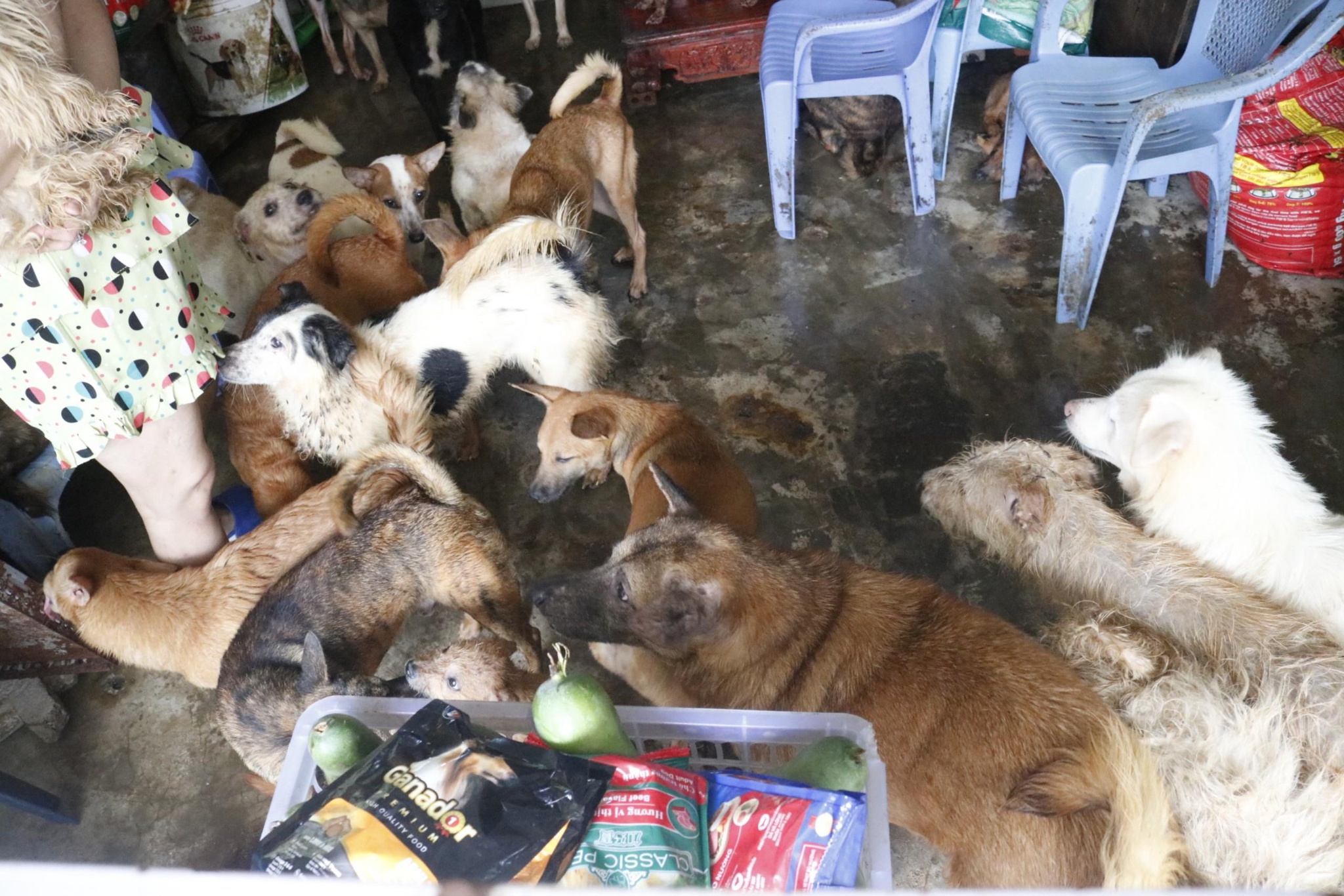 Mỗi ngày bà Thanh sử dụng 50kg gạo, 10kg thịt và 5kg rau củ quả để nấu đồ ăn 3 bữa cho đàn chó. Hiện không có công việc, bà Thanh chăm sóc đàn chó dựa vào số tiền và lương thực mà mạnh thường quân hỗ trợ. Chi phí mỗi ngày bà nhẩm tính khoảng 1 triệu đồng chỉ tiền đồ ăn chưa kể chi phí khi đau bệnh.