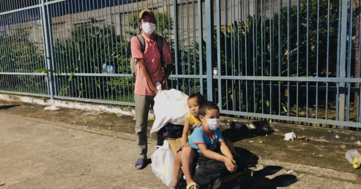 “Suốt 4 tháng nay tôi mất việc làm, chỉ quanh quẩn ở nhà, tiền bạc không có. Đồ ăn giúp cả gia đình cầm cự mấy tháng qua đều do các nhà hảo tâm hỗ trợ. Tôi cùng hai đứa con đã bắt đầu đi bộ về quê từ Trảng Bom, Đồng Nai lúc 10h sáng. Bây giờ đã gần 21h tối rồi mà mấy cha con mới đi tới Bình Chánh thôi” – anh L. chia sẻ.