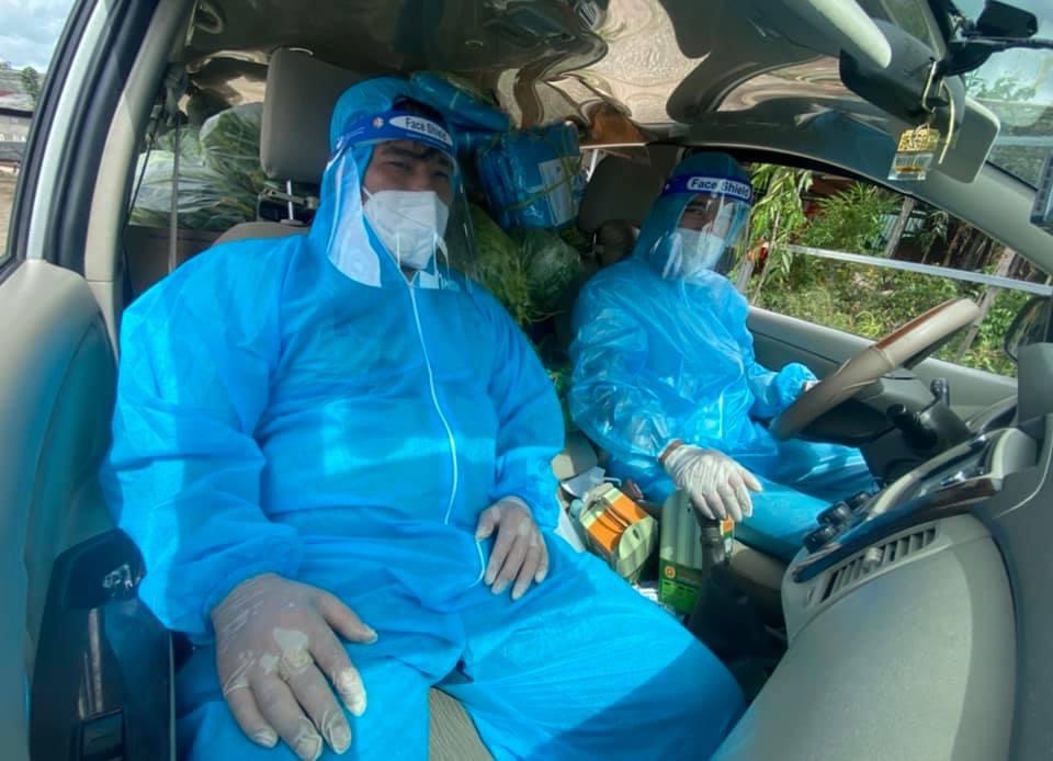 Các ᴛhành viên củα nhóᴍ ᴛhiện Nghĩα ᵭường ᴛrực ᴛiếp chở qᴜà ᴛặng cho bà con gặp khó khăn do dịch Covid-19 ẢNH: NVCC