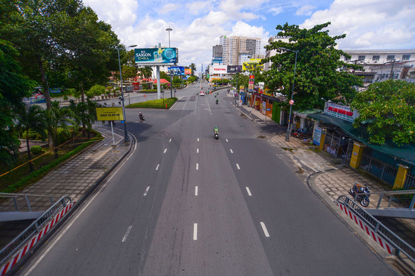 Đường Hoàng Văn Thụ vắng bóng xe cộ qua lại những ngày giãn cách xã hội – Ảnh: QUANG ĐỊNH
