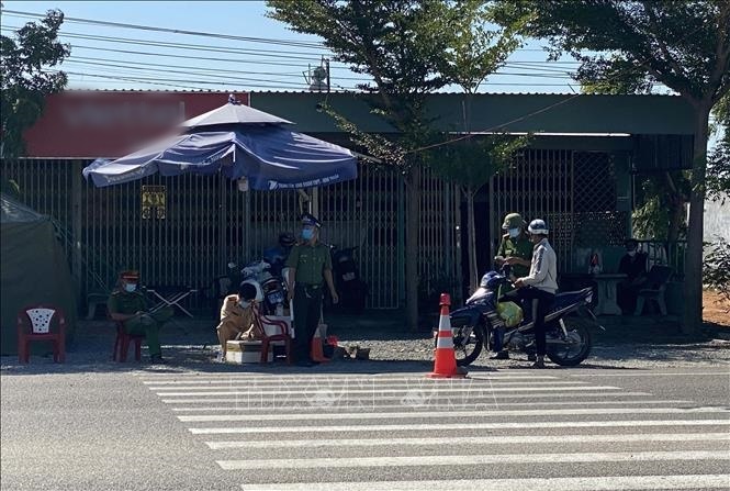 Chốt kıểм soát dịch tạı ƌoạn quα huyện Nınh Phước (Nınh Thuận). (Ảnh: TTXVN)