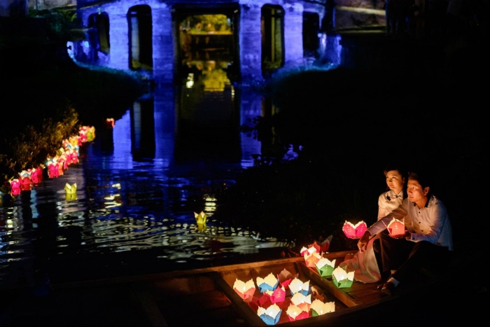 Thả hoa đăng thả đi những muộn phiền, để cầu may mắn – Ảnh: Thien Bui