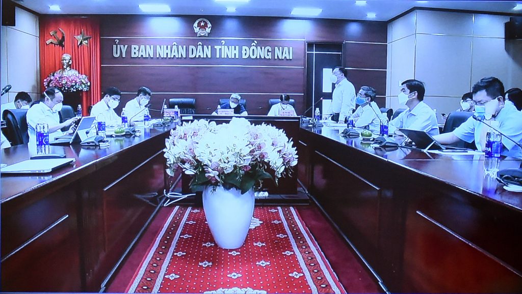 Toàn cảnh cuộc họp trực tuyến giữa Phó Thủ tướng Vũ Đức Đam, Trưởng Ban Chỉ đạo quốc gia phòng, chống dịch COVID-19 với tỉnh Đồng Nai về công tác phòng, chống dịch bệnh trên địa bàn. Ảnh: VGP/Đình Nam