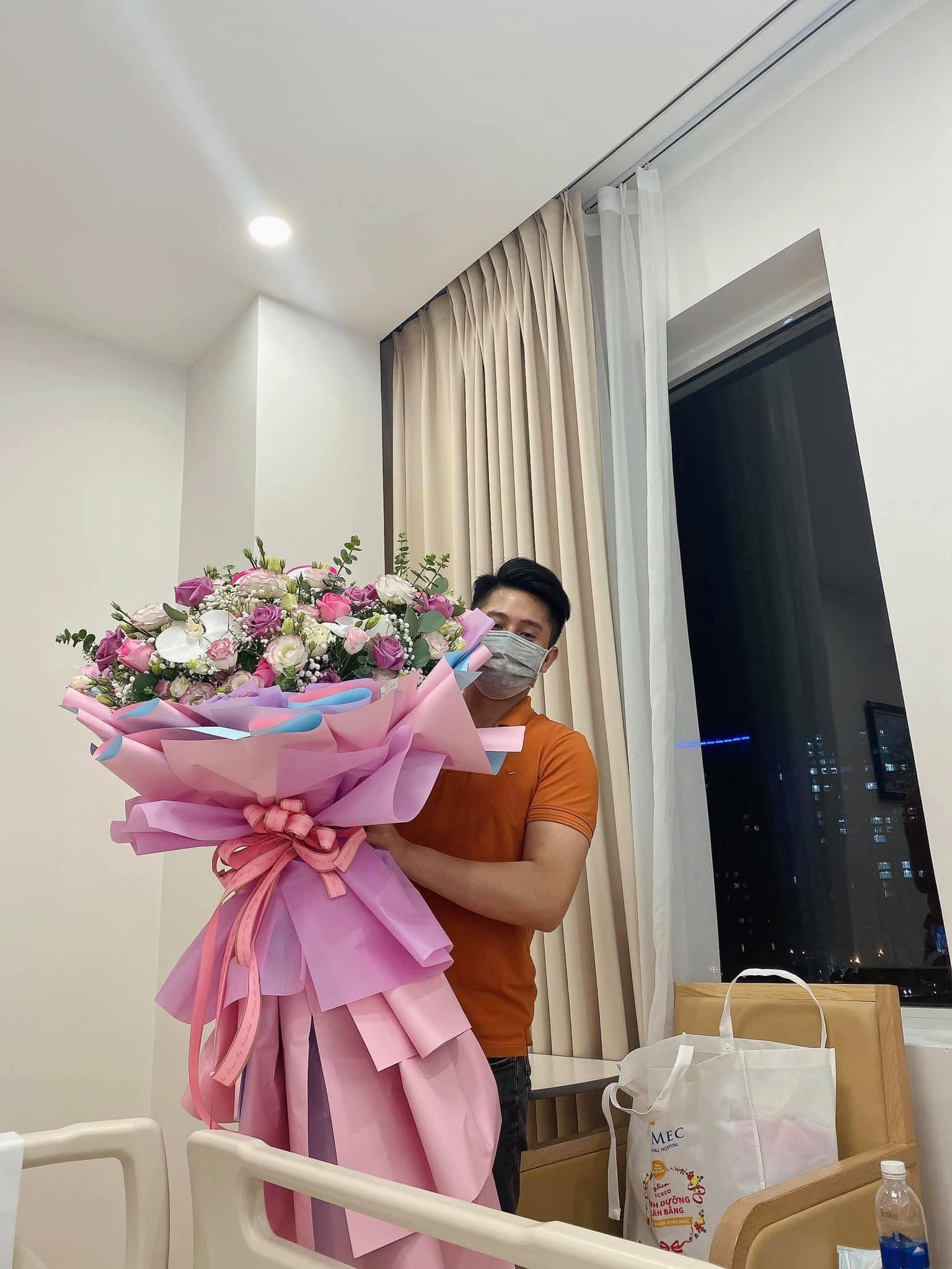 Chồng nhà người ta với bó hoa cao cả mét khiến ai cũng trầm trồ.