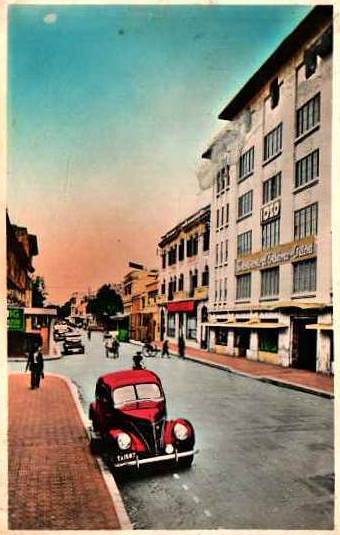 Ô tô đỗ cạnh Nhà hàng Taverne Royale và bách hóa Godard