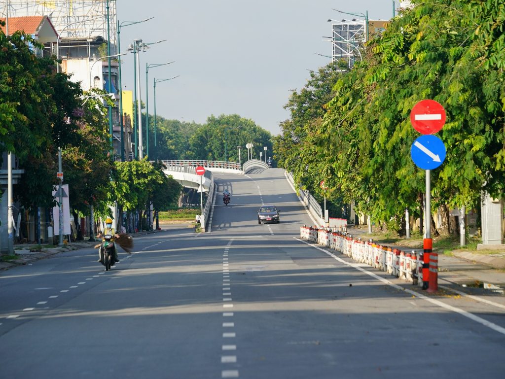 Chốt kiểm soát cầu Bình Triệu 1 vắng vẻ trong sáng 23.8