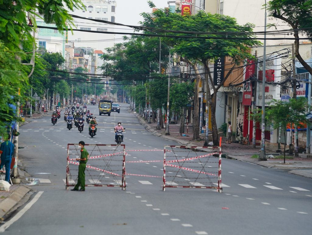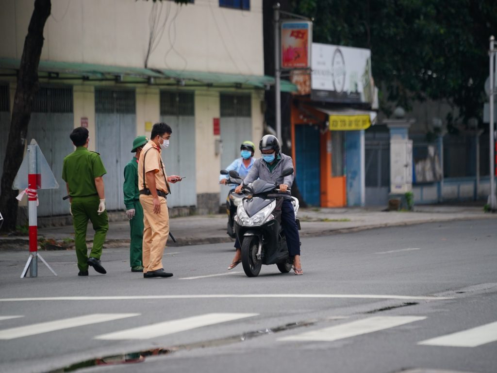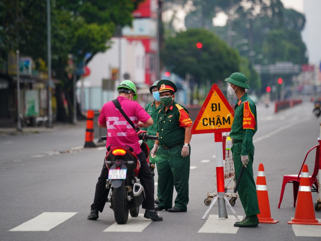 Sáng 23.8 – ngày đầu tiên quân đội hỗ trợ TP.HCM siết chặt giãn cách, nhiều chốt kiểm soát tại Gò Vấp, Bình Thạnh, Q.7,… khá vắng người qua lại. Hôm nay, quận nhắc nhở, quận kiên quyết yêu cầu quay đầu, xử phạt