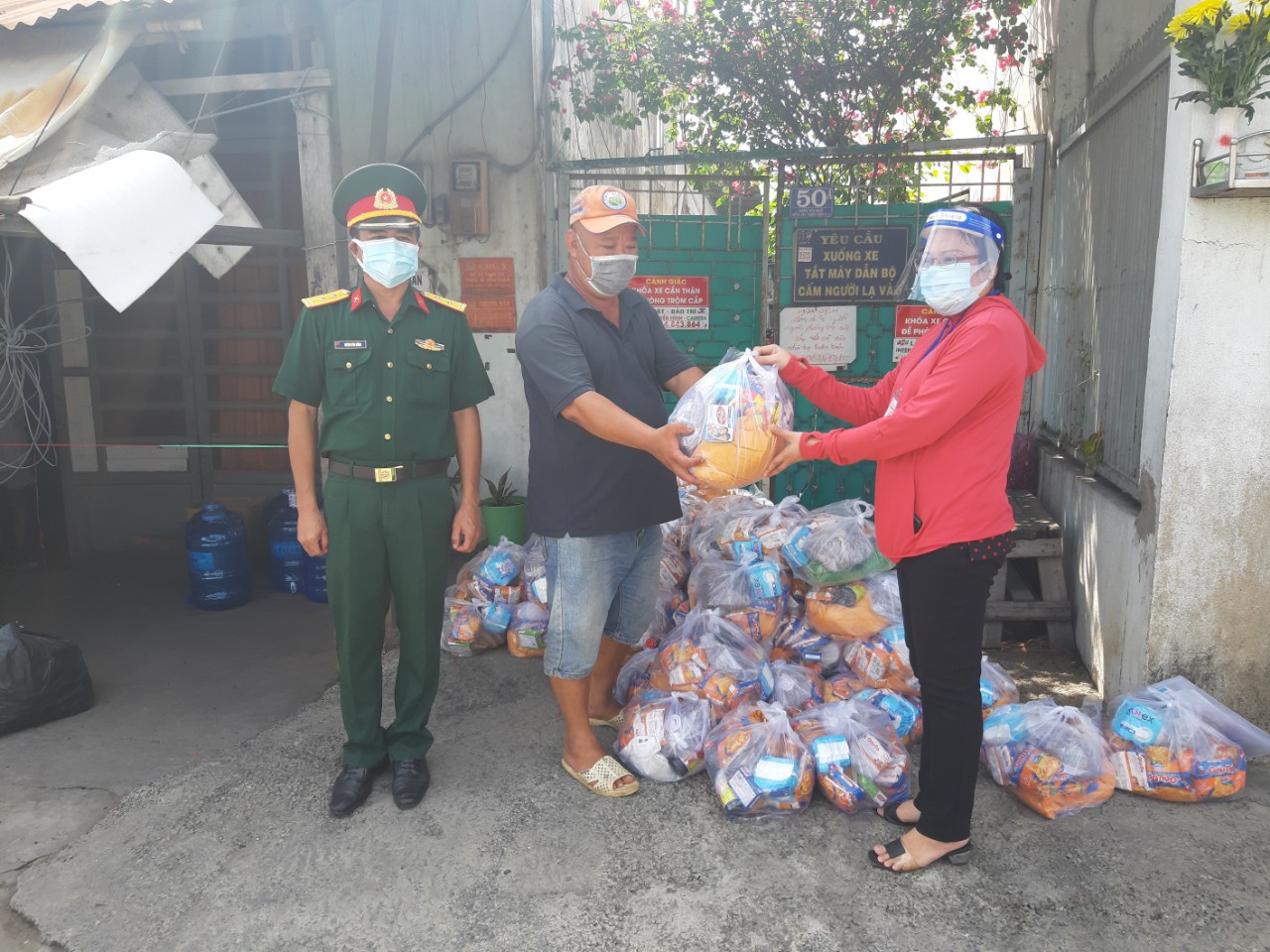 Khu xóm trọ nhận được các phần hỗ trợ từ Ban chỉ huy quân sự Q.7