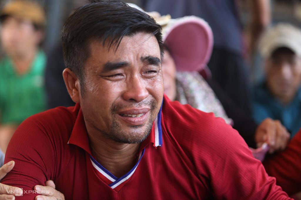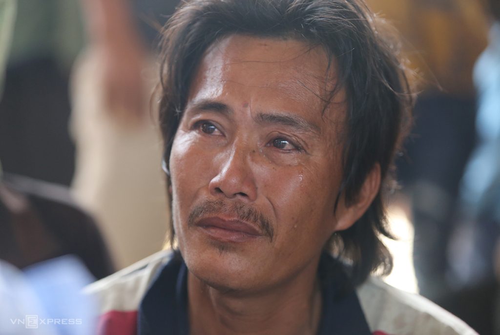 Ông Nguyễn Văn Bé, 44 tuổi ở xã Tam Giang (huyện Núi Thành), không cầm được nước mắt khi cùng 46 ngư dân khác đặt chân lên bờ an toàn.