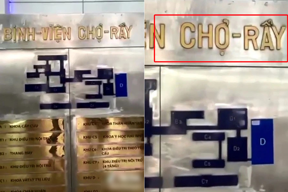 Đáng chú ý, bảng hiệu đó lại ghi là “Bịnh viện Chợ Rẩy” thay vì dấu ngã như bình thường và được đặt ngay sảnh chính. Nhìn phông chữ khác thường cùng cách sai chính tả công khai như vậy, nhiều người không khỏi tò mò và truy tìm đáp án.