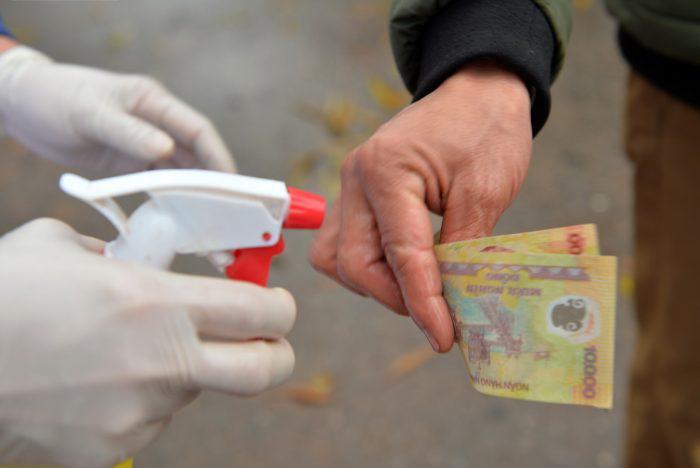 Khử trùng tiền cũng là một việc nên làm mùa dịch. (Ảnh: Ngân Hàng Pháp Luật)