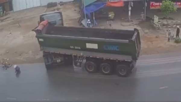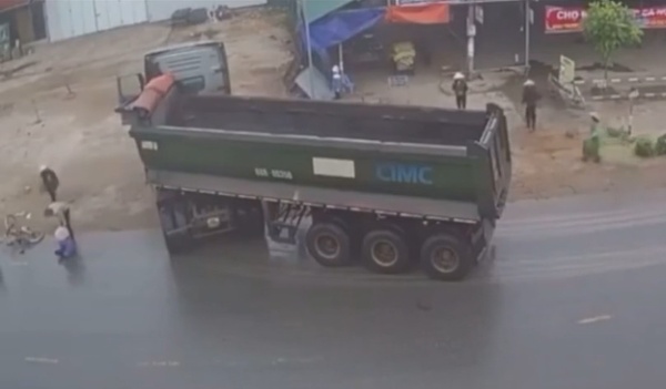 Mới đây, một đoạn clip ghi lại tình huống giao thông nguy hiểm được chia sẻ lên diễn đàn mạng xã hội giao thông. Người phụ nữ đi xe đạp xuất hiện trong clip đã may mắn thoát khỏi “lưỡi hái tử thần” sau pha va chạm với ô tô tải.