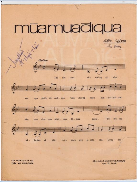 Ca khúc “Mùa mưa đi qua”được nhạc sĩ Hà Phương sáng tác vào những năm 1960. Thời gian này ông đang ở Mỹ Tho và có tình cảm với người con gái tên Duyên (ca sĩ), Ngoài bút danh Hà Phương thì ông còn 1 bút danh khác đó là Du Uyên. Không khó để nhận ra bút danh này được ghép từ tên mối tình đầu của ông.