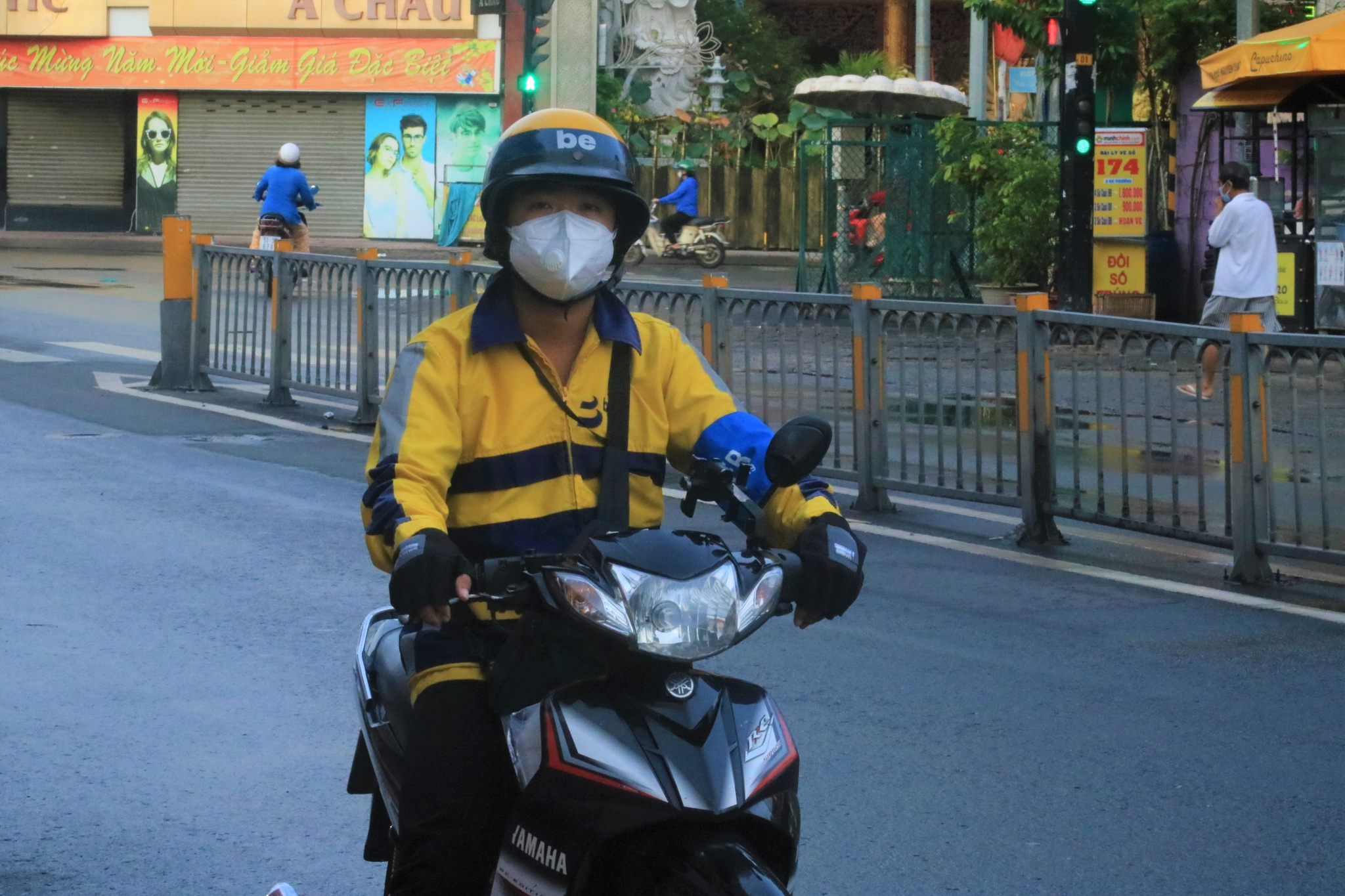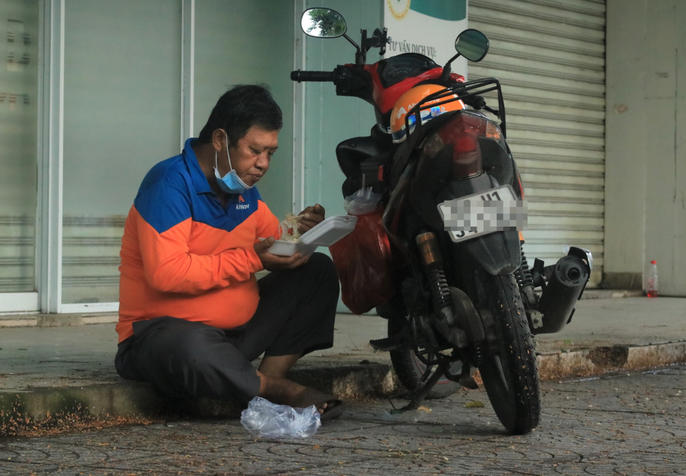 Anh Huỳnh Thanh Vũ (25 tuổi) vừa nhận đơn hàng đầu tiên trong sáng nay. Anh Vũ nói những ngày qua, anh đi làm đến 2 – 3 giờ chiều là về nhà ăn uống, nghỉ ngơi rồi hôm sau đi làm tiếp.