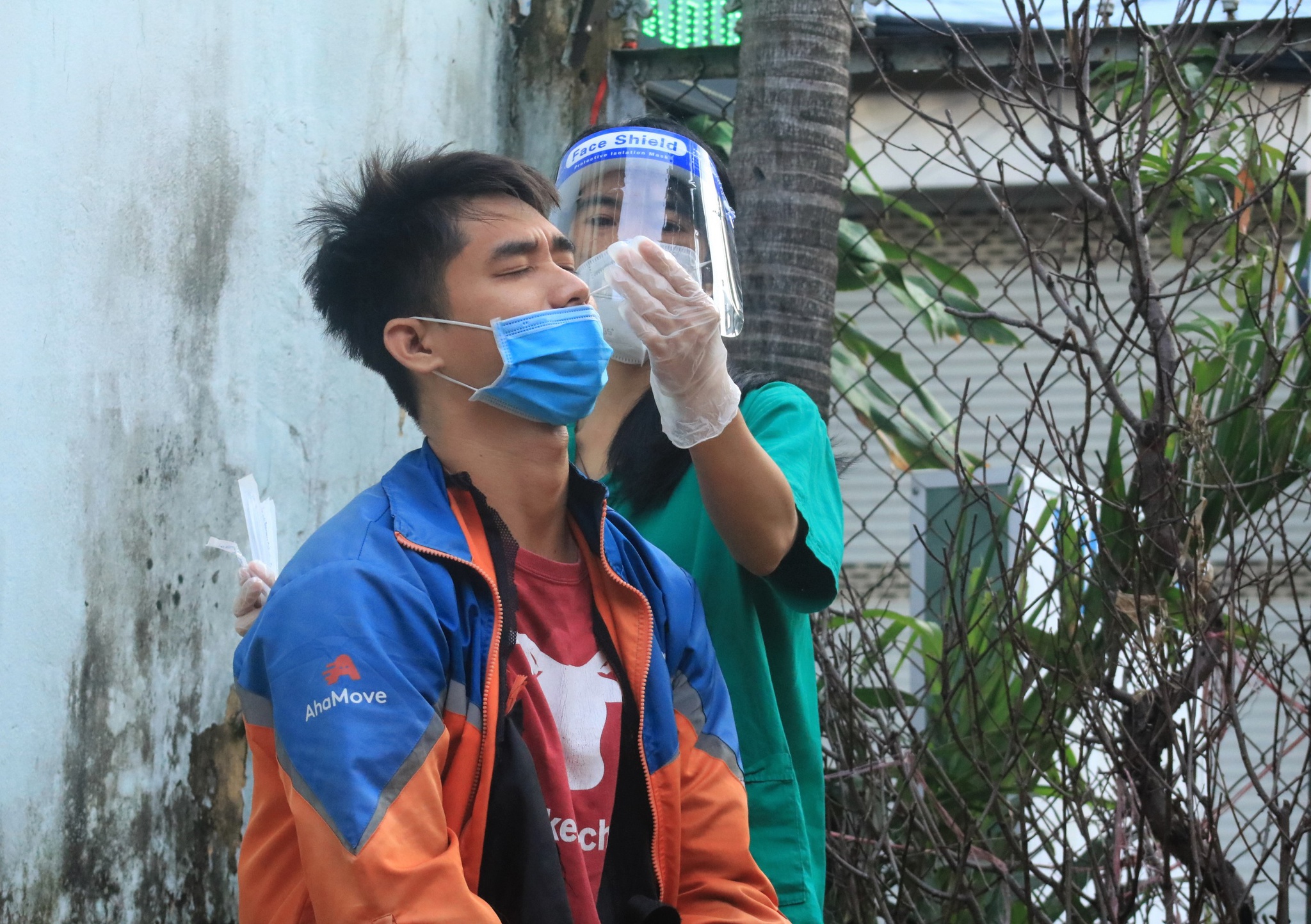 Sáng sớm 11.9, ông Trần Văn Dũng (50 tuổi, Q.Bình Thạnh) đến một trạm y tế trên địa bàn để xét nghiệm Covid-19 miễn phí trước khi bắt đầu công việc giao hàng. Ông nói ông đã quen với việc “ngoáy mũi” này hơn 1 tuần nay, sau khi shipper “vùng đỏ” được phép hoạt động trở lại.