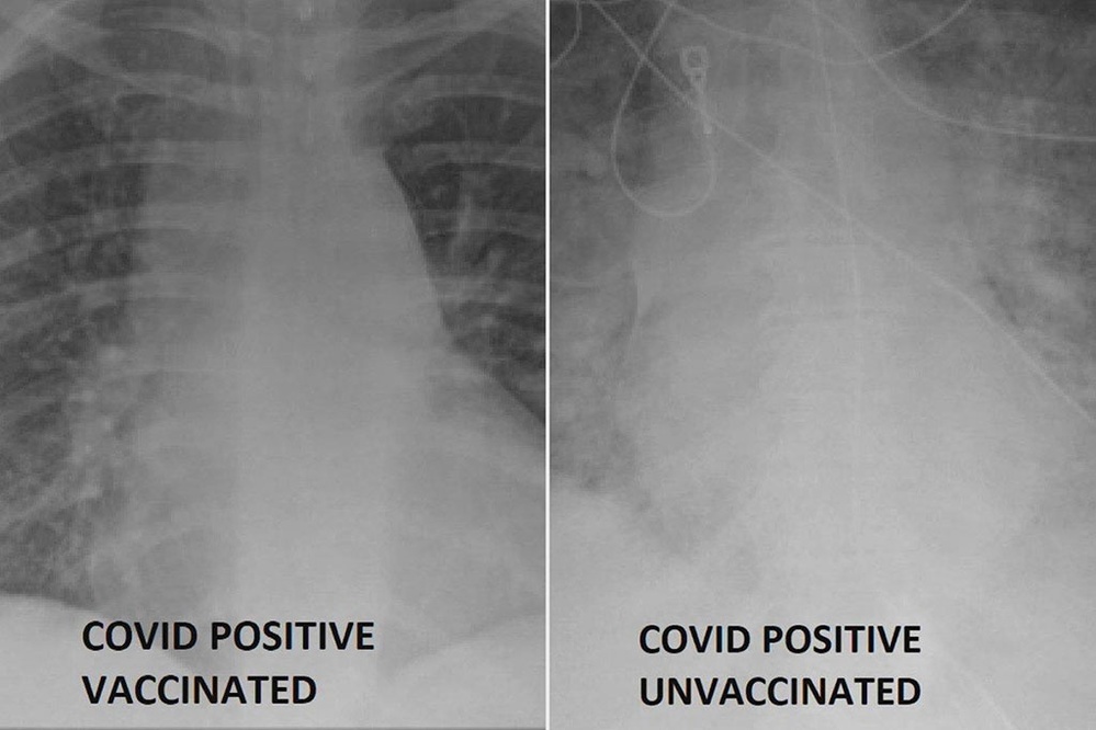 Để thấy rõ điều đó, các bác sĩ ở nhiều quốc gia đã tiến hành so sánh phim chụp phổi của những ca Covid-19 đã tiêm và chưa tiêm chủng. Chỉ cần nhìn hình ảnh thôi mọi người cũng sẽ thấy sự khác biệt.