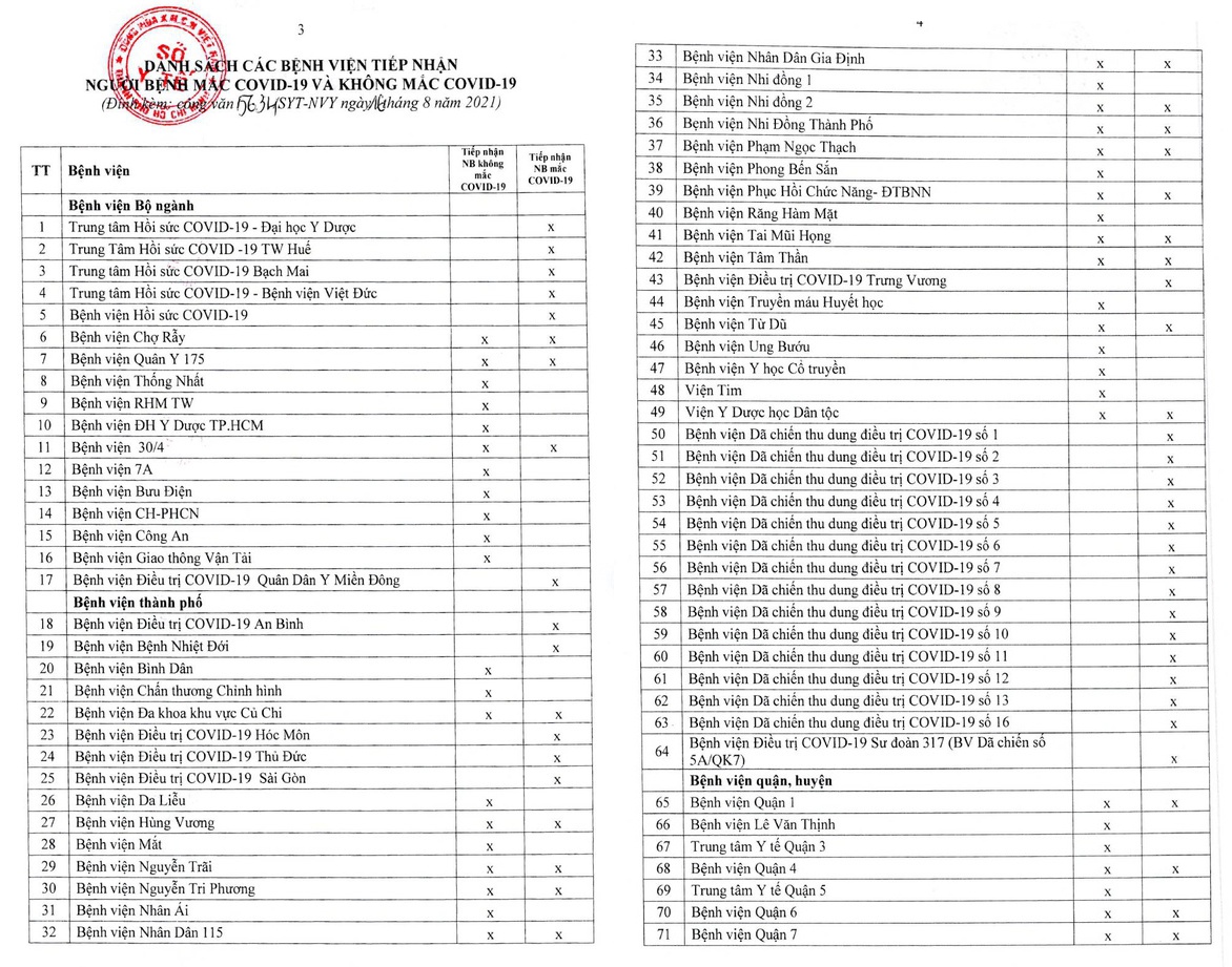 Ngày 16.8, PGS.TS Tăng Chí Thượng, Phó giám đốc Sở Y tế TP.HCM đã có công văn gửi khẩn đến các bệnh viện, cơ sở y tế công và tư trực thuộc yêu cầu sẵn sàng tiếp nhận bệnh nhân đến khám, cấp cứu.