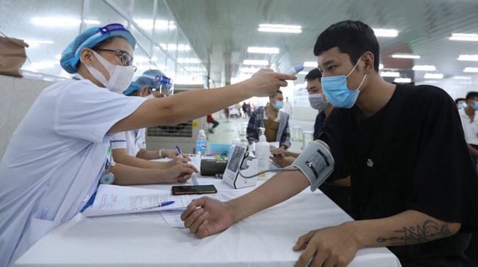 Đo huyết áp trước khi tiêm vắc xin Covid-19