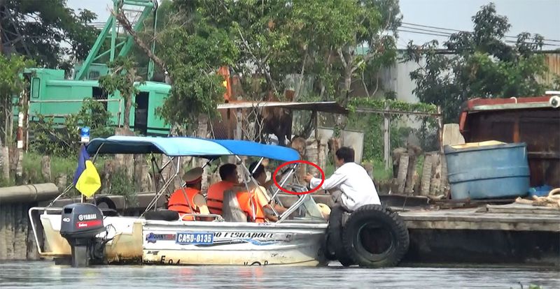 Khi có mặt trên các phương tiện thủy, chúng tôi chứng kiến các tài công, chủ tàu… đã nhét những tờ tiền trong sổ trước khi trình cho CSGT và TTGT kiểm tra…