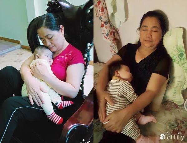 Bà ngoại bế cháu cho mẹ bé nghỉ ngơi.