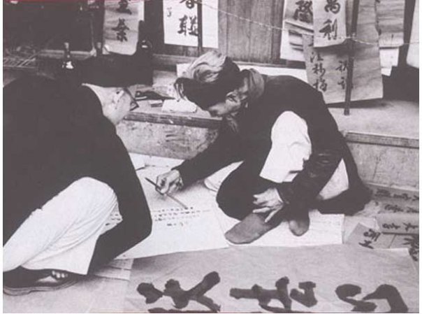 Hình ảnh ông đồ già trên phố là dấu hiệu đầu tiên để đám trẻ biết Tết đã sắp về. (Ảnh tư liệu)