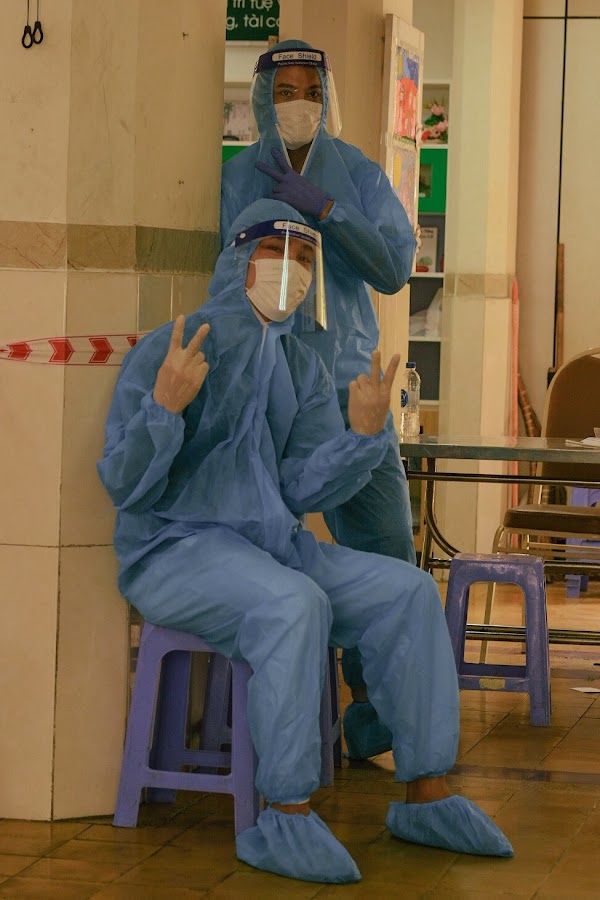 ‘Từ hồi tháng 7, mình đăng ký làm tình nguyện viên ở quận 3. Vì công việc nguy hiểm nên không về nhà mà ở nhờ nhà bạn. Khi cả nhà thông báo kết quả, mình rất hoảng sợ và bối rối. Không chỉ nhà mình mà nguyên con hẻm đó đều dương tính hết, không rõ nguồn lây’, anh kể lại.