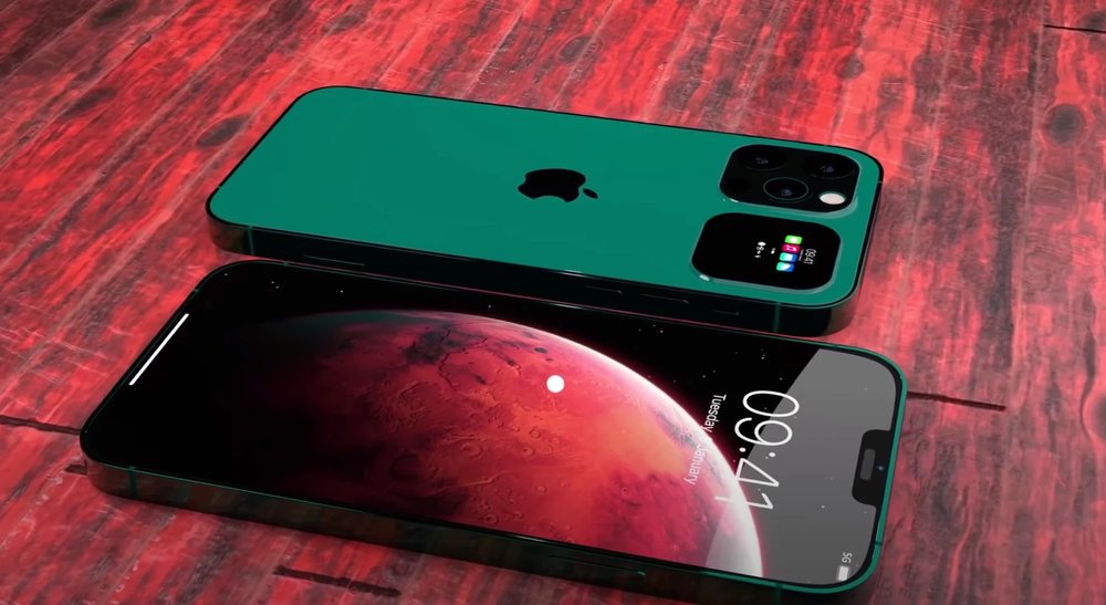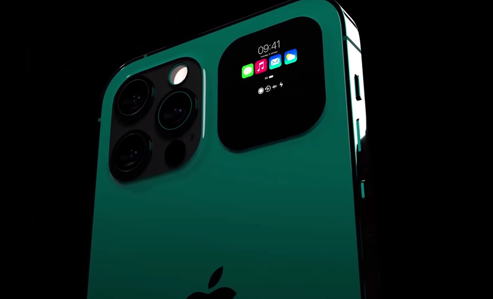 iPhone 13 dự kiến có thêm màn hình phụ phía sau mặt lưng, hiển thị đủ loại ứng dụng như thời tiết, email, Apple Music, iMessenger. Độ to của màn hình phụ có kích thước gần bằng với cụm camera một bên. Ngoài ra, phiên bản mới này cũng gây ấn tượng bởi hàng loạt màu “gây thương nhớ” như đỏ, hồng, tím… Nhiều người nhận định, đây là lần hóng iPhone “đã” nhất từ trước tới giờ bởi sự đột phá quá xuất sắc.