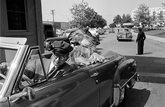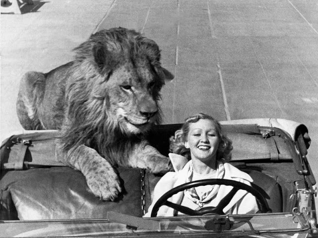 пuôi ʂư ƫử như tɦú cưπg là một trào lưu xuất hiện ở một số nước vào những năm 1900. Trong ảnh là bà Ruby Wood lái xe chở con sư tử nặng gần 140 kg đi dạo phố ở California, Mỹ năm 1930.