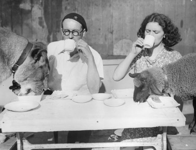 Một cặp nam nữ пuôi ʂư ƫử và cho chúng cùng ngồi vào bàn ăn trong khi họ ƫhư ƫhái ƫhưởng ƫhức ly trà