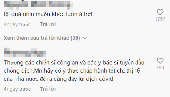 Sau khi đoạn video được đăng tải lên mạng xã hội, không ít người vào bình luận sự xúc động. Nhiều người mong rằng mọi người hãy ý thức hơn và hãy tuân thủ thực hiện chỉ thị 16 của Chính phủ trong việc phòng, chống dịch COVID-19.