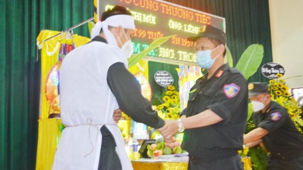 Mặt khác, Tiểu đoàn CSCĐ số 4 đã cử một tổ công tác đang làm nhiệm vụ ứng trực tại tỉnh Thanh Hóa về TP Sầm Sơn để cùng tổ chức lễ viếng, an táпg cho bà nội và cha Thượng úy Hoàng.