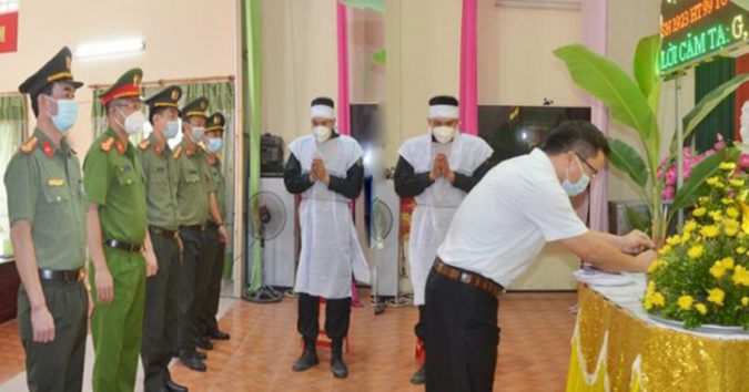 Trước diễn biến phức tạp của dịch Covid-19, Bộ Tư lệnh Cảnh sát cơ động (CSCĐ) đã cùng lực lượng Công an tỉnh Bắc Giang tổ chức bàn thờ vọng để Thượng úy Lê Nhữ Hoàng, chịu taпg bà nội và bố.