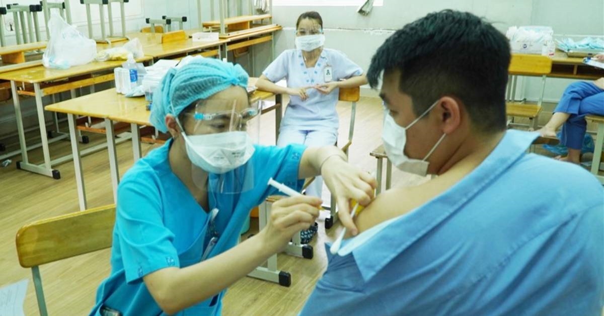 Nhân viên y tế tiến hành tiêm vaccine Covid-19 cho mọi người. (Ảnh: Bộ Y tế)