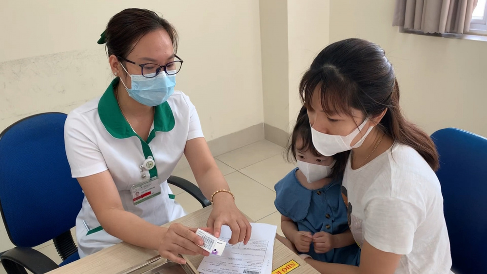 Phụ huynh sẽ được nhân viên y tế giải thích kĩ càng về thuốc trước khi cho con tiêm. (Ảnh: Bệnh viện quốc tế Hoàn Mỹ Đồng Nai)