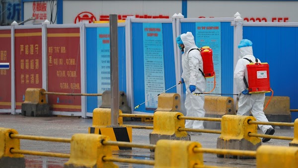 Nhân viên y tế phun khử khuẩn tại chợ Hoa Nam ở Vũ Hán. Ảnh: Reuters
