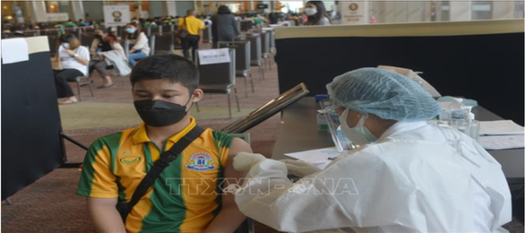 Nhân viên y tế tiêm vắc xin ngừa COVID-19 cho trẻ em tại Bangkok, Thái Lan, ngày 19-10-2021 – Ảnh: THX/ TTXVN