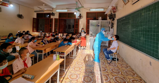 Trước đó, ngày 4.11, 90 học sinh và 12 giáo viên của trường là F1 cũng đã được lấy mẫu xét nghiệm và đưa đi cách ly. 4 người trong một gia đình ở thôn Trang Quan (xã An Đồng, H.An Dương) đã có kết quả xét nghiệm mẫu gộp dương tính Covid-19 vào ngày 3.11. Trong đó, có 2 trẻ em đang học lớp 2 và lớp 4 ở Trường tiểu học An Đồng.