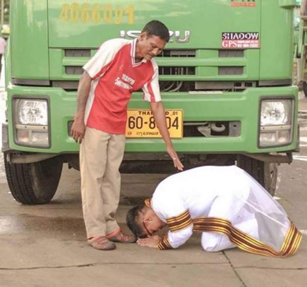 “Cha tôi không có một công việc yêu thích nào. Ông là một người lái xe chở rác. Khi tôi còn nhỏ, tôi thường mặc cảm và xấu hổ về công việc của cha tôi. Nhiều lần tôi cảm thấy mất mặt và ghen tị với những ông bố bảnh bao của những bạn bè khác”, cậu con trai quỳ gối cảm ơn cha tâm sự.