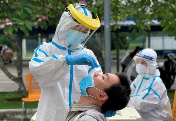 Nhân viên y tế lấy mẫu xét nghiệm cho mọi người. (Ảnh: Báo Chính Phủ)