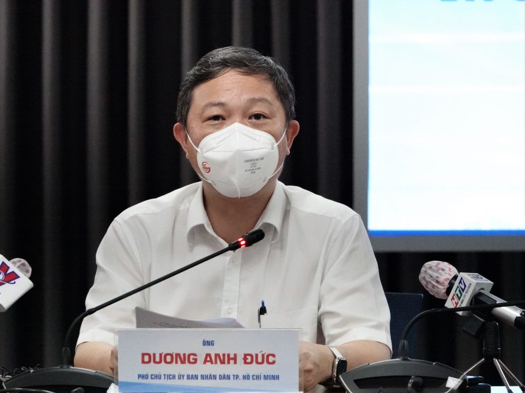 Phó chủ tịch UBND TP.HCM Dương Anh Đức trao đổi tại buổi họp báo