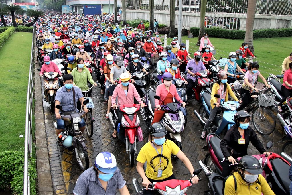 Công nhân làm việc tại Công ty TNHH PouYuen Việt Nam trong giờ tan ca