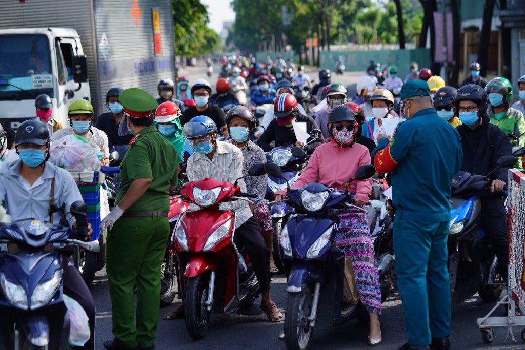 Chốt kiểm soát ở Q.Gò Vấp đông đúc trong buổi sáng hôm qua, ngày 12.7