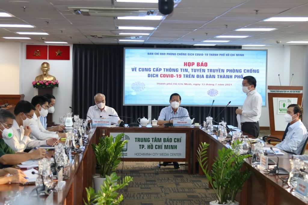 Chiều 13-7, Phó bí thư Thường trực Thành ủy TP.HCM Phan Văn Mãi chủ trì cuộc họp báo thông tin về tình hình thực hiện công tác phòng, chống dịch trên địa bàn TP.
