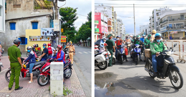 Ảnh: Người dân TP.HCM ra đường ngày đầu giãn cách, khá bất ngờ khi được CSGT lập chốt hỏi lý do. Nguồn: Báo Thanh Niên.
